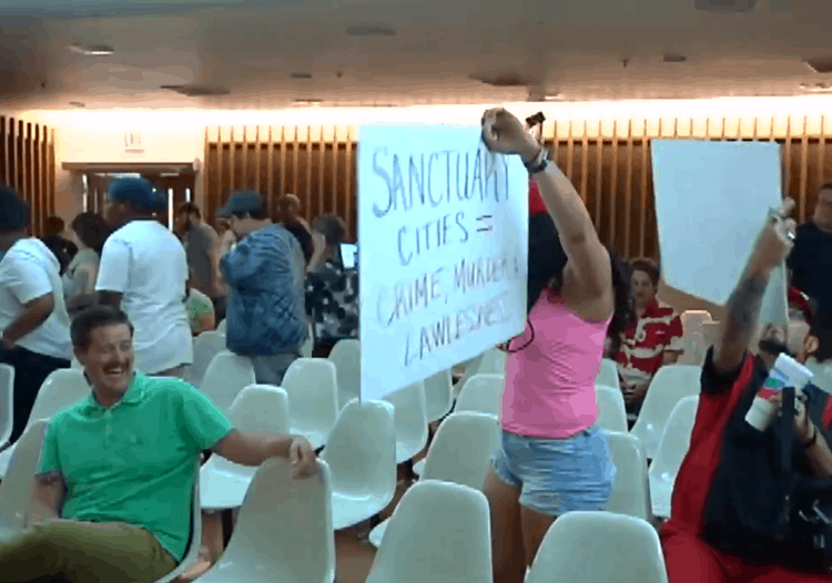 Scene inside a Tucson City Council Meeting. Officials voted to put a “Sanctuary City” measure on the November ballot pic.twitter.com/mEh4PNj0Wo