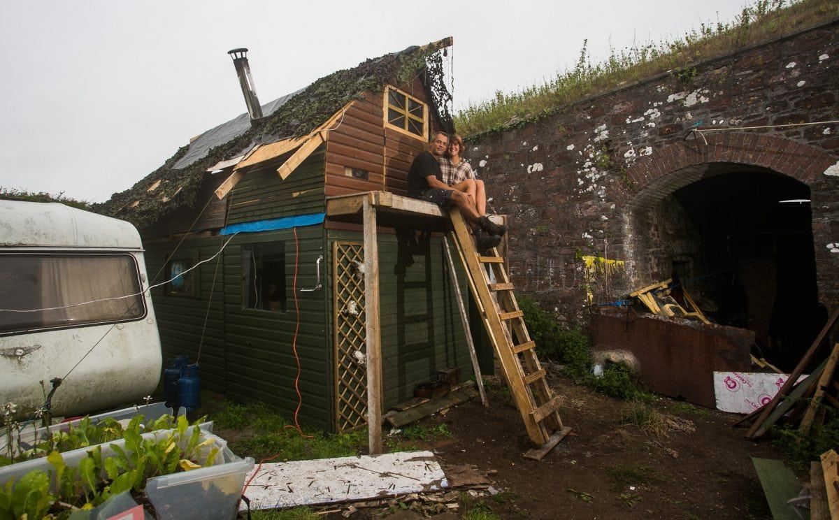 A free-spirited couple have told how they live totally off-grid in a hilltop coastal fort – spending just £1,200 a YEAR.