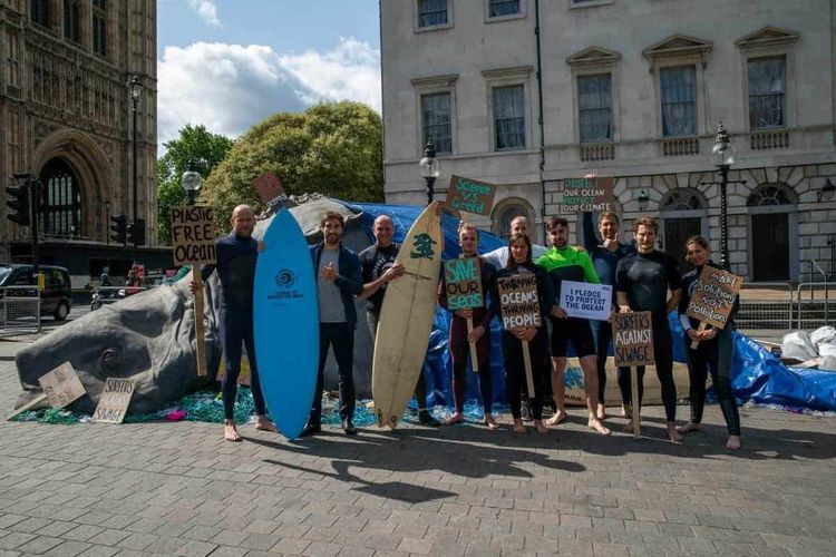 Former Arsenal footballer Mathieu Flamini joined a Westminster protest aimed at protecting the ocean from plastic pollution and highlighting the climate crisis.