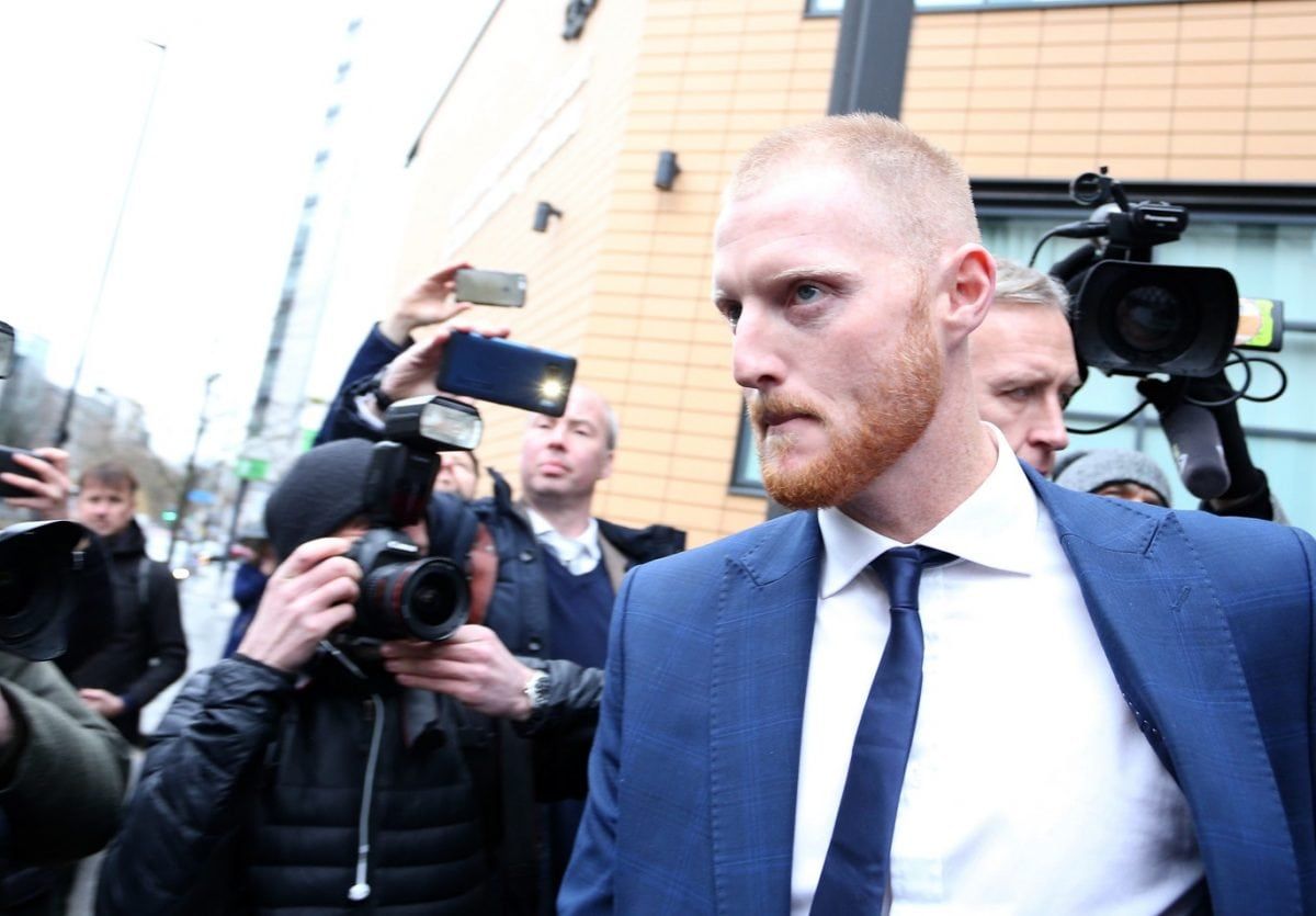 Stokes, wearing a blue skinny suit with a shaved head, was mobbed by a scrum of photographers and camera crews as he climbed the steps to the court.