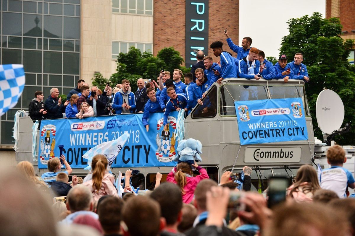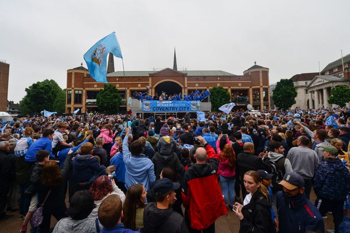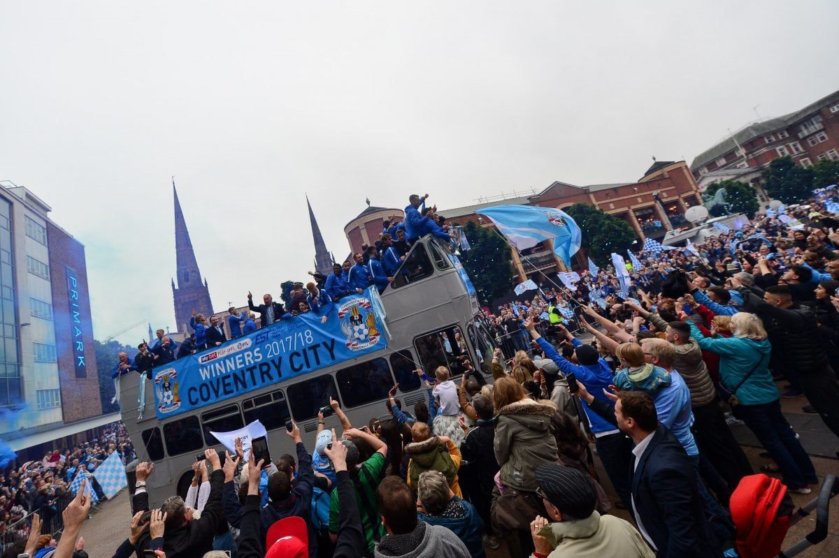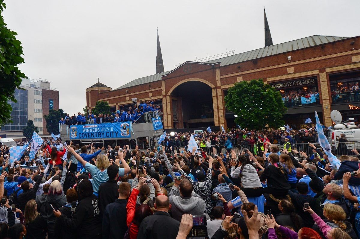Coventry City fans lined the ten mile route of the Sky Blues’ open top bus parade to celebrate promotion from League 2.
