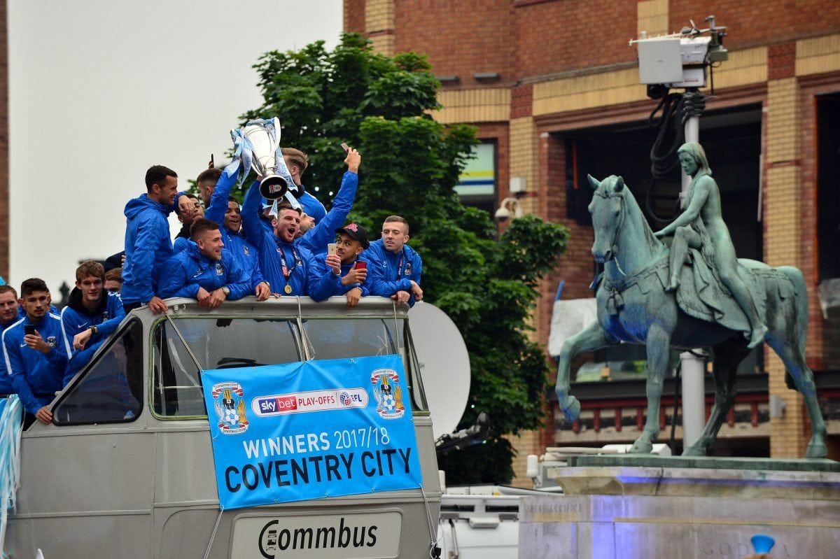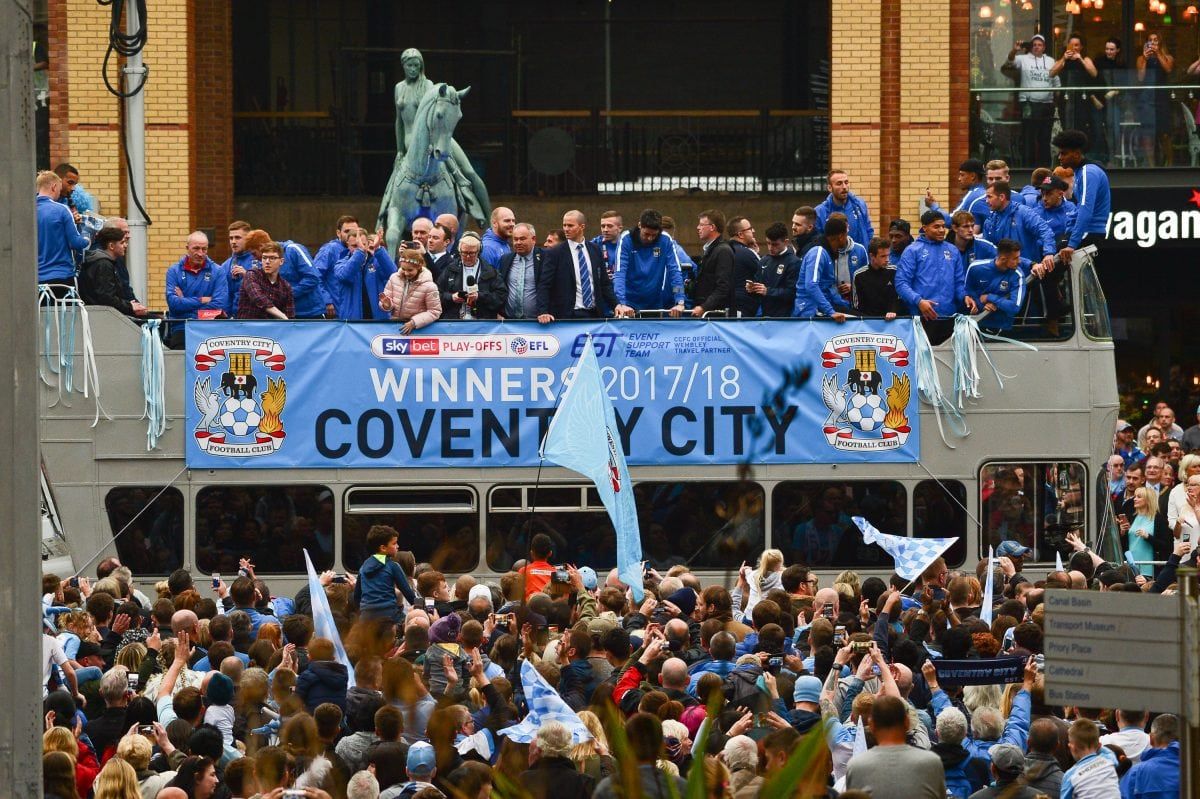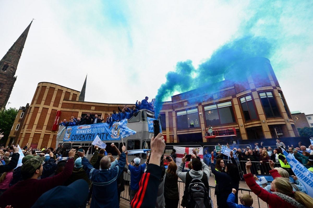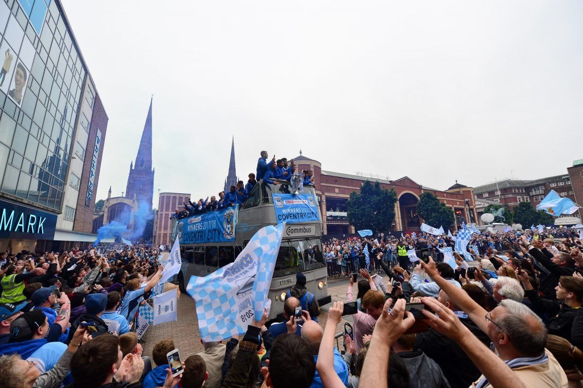 Coventry City fans lined the ten mile route of the Sky Blues’ open top bus parade to celebrate promotion from League 2.
