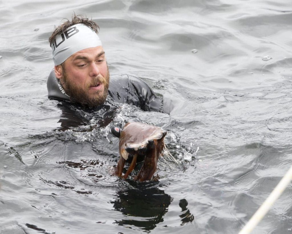 “Then the hair and beard on my face to offer some jellyfish protection, which again is equally important when it comes to Scottish waters and the giant jellyfish that are swimming around here.”