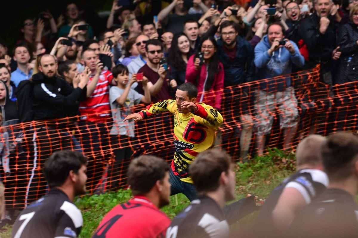 Legendary cheese-chaser Chris Anderson risked life and limb – well mainly limb – hurling himself into the record books for chasing a wheel of Double Gloucester down a super-steep hill.