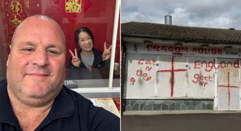 ‘Big John’ keeps his promise to visit Chinese takeaway vandalised by racists
