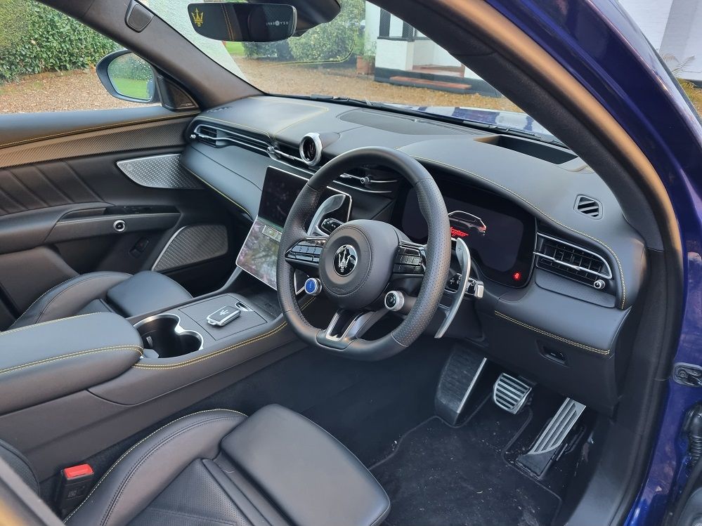 There is an unholy, class-leading amount of power available to you here. The 3ltr twin-turbo V6 is the Nettuno unit first rolled out in Maserati’s MC20 supercar. It’s detuned here but produces a surprising level of power and performance. 530hp and 620Nm of torque are sufficient to shove this two-ton family wagon from 0-62mph in 3.7secs. Perhaps more impressively, it keeps delivering that punch from higher speeds, making motorway journeys effortless.
