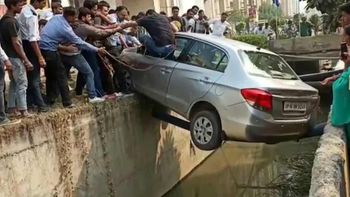 Dashcam footage captured the moment the swan hurled itself towards the van last month