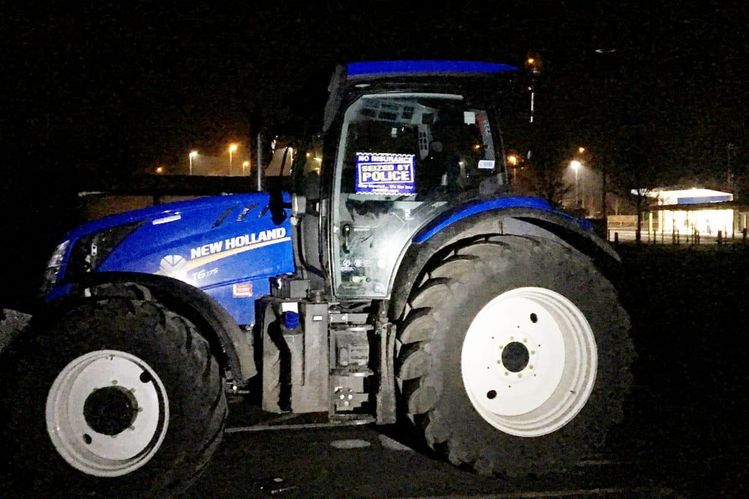 The tractor had a large sticker on it saying “seized by police – no insurance”.