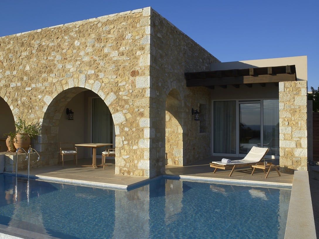 There are two major hotels, two putatively eco-friendly golf courses, olive groves and gardens and glorious white sandy beaches where the sea and sky morph into one paradisal scene. The Westin Resort Costa Navarino is sensitively designed: stone walled buildings, gardens and winding paved walkways straight out of traditional Greek architecture. Rooms are spacious, designed for privacy, all enjoying sea views and many with private pools. On arrival guests are given a map of the campus and you’ll certainly need it until orientation settles in.