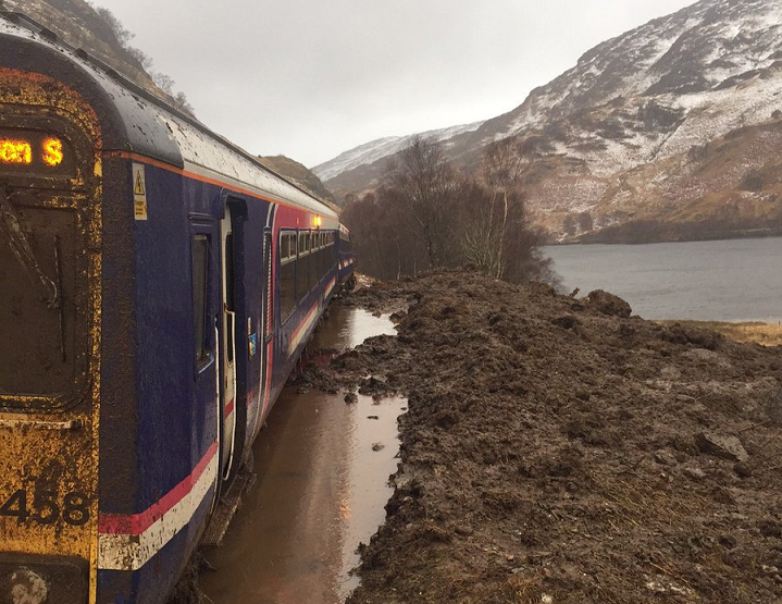 Passengers were left stranded after the train struck severe mud on the track between Arisaig and Glenfinnan, Lochaber, at around 6.50am yesterday morning.