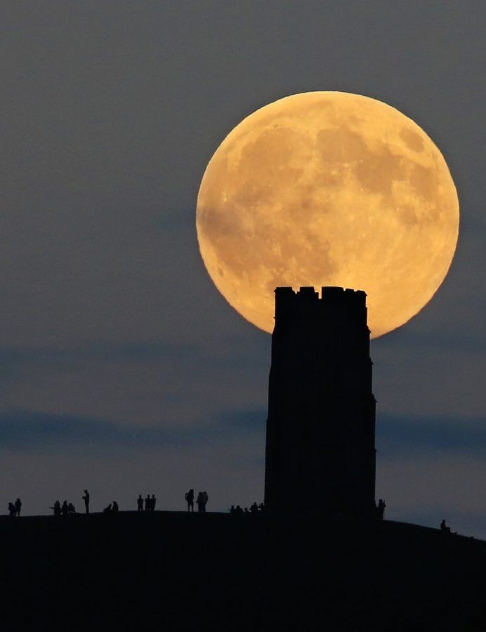 People gather on the top of Glastonbury Tor to witness the Full Buck Moon rising over the Somerset Landmark. The name for July’s full moon origins came about as it is normally the month when the new antlers of buck deer push out of their foreheads.